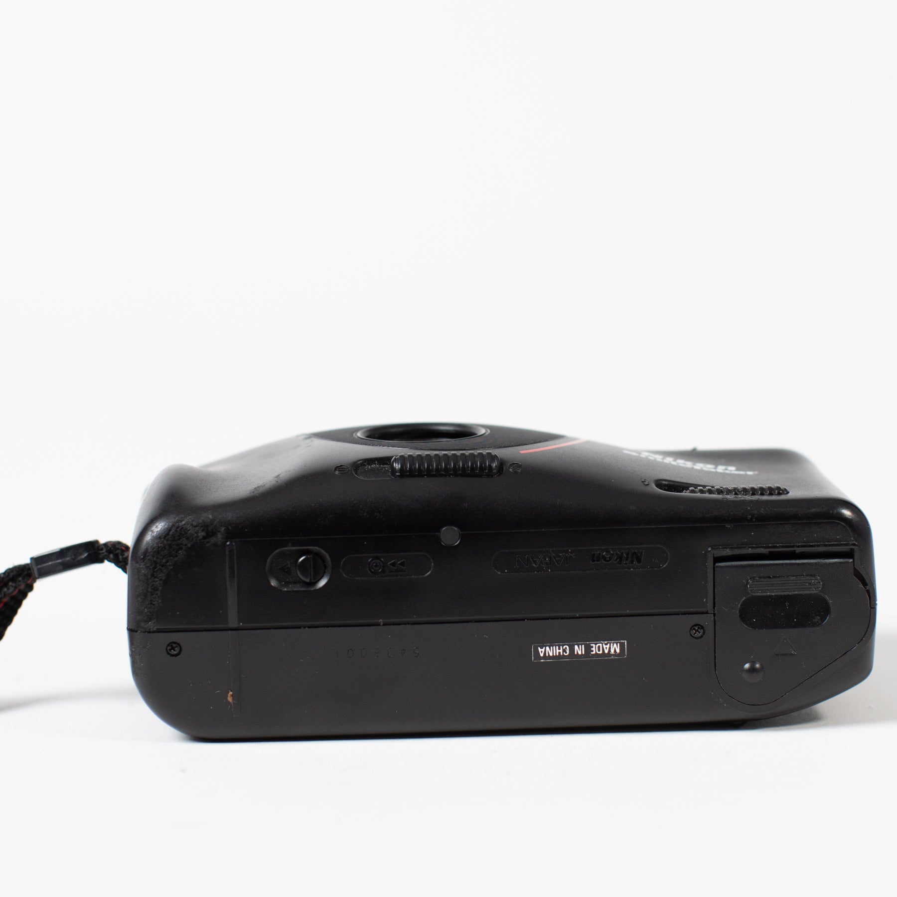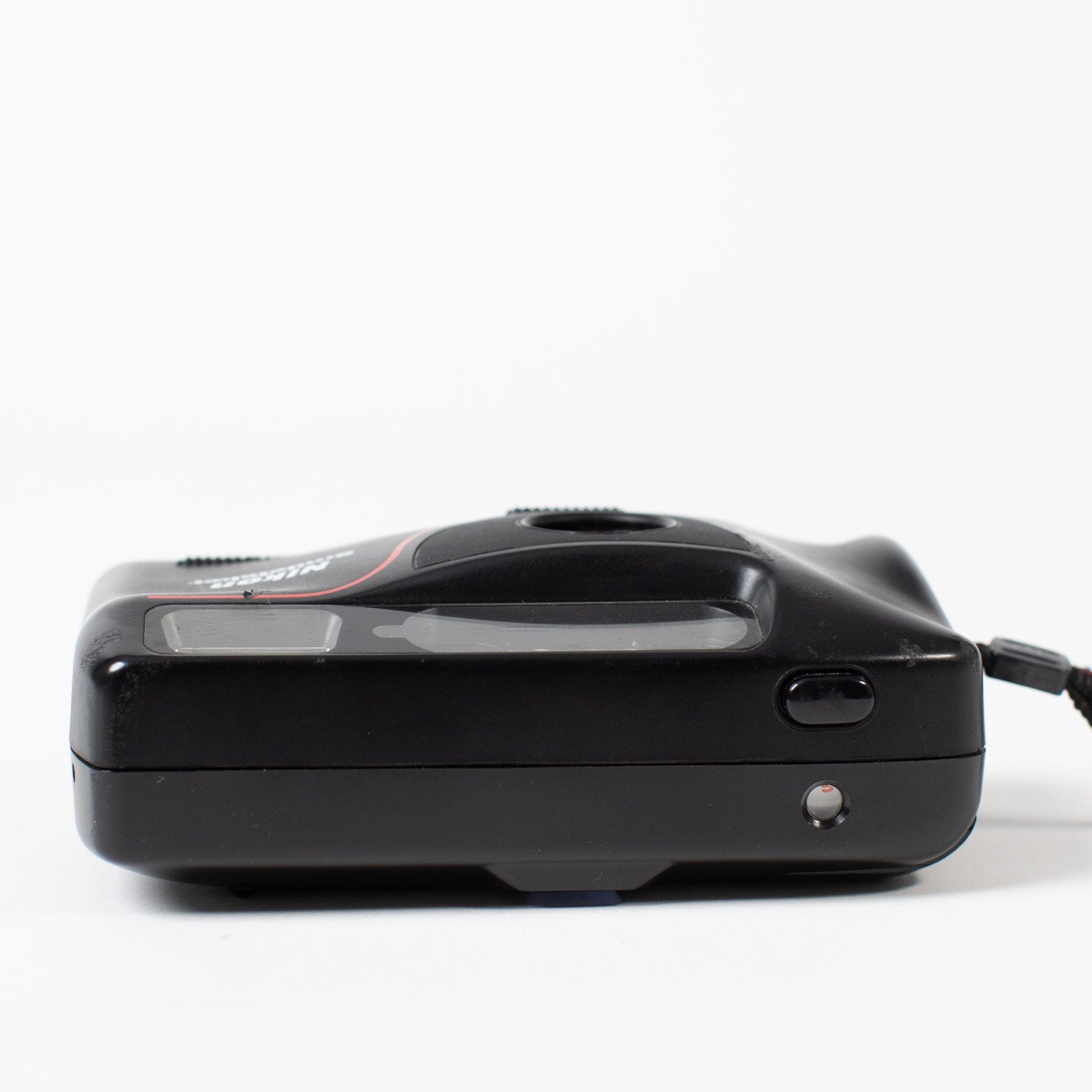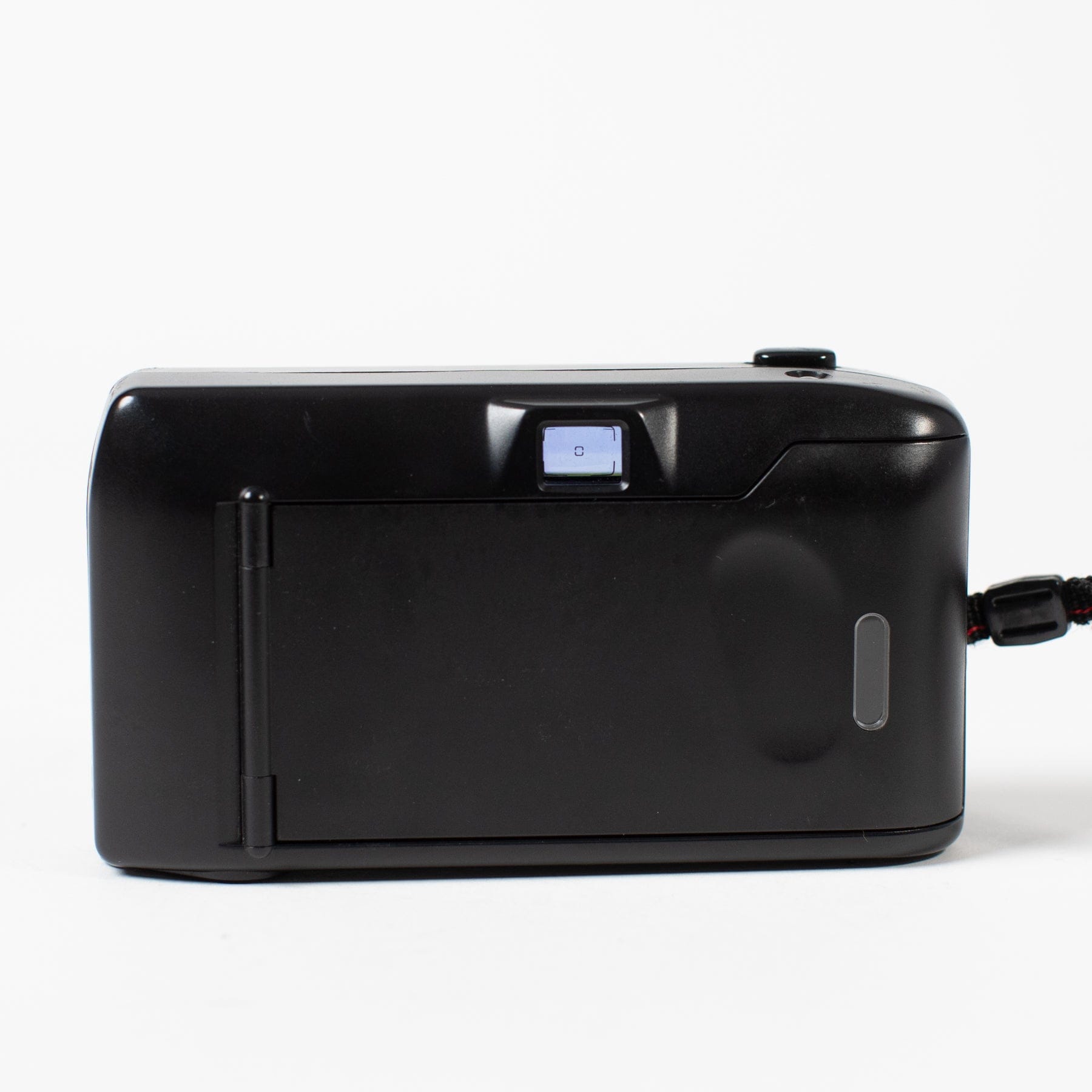 A cute little point-and-shoot with a vintage, sporty design. Fixed 34mm lens, automatic flash, autofocus.